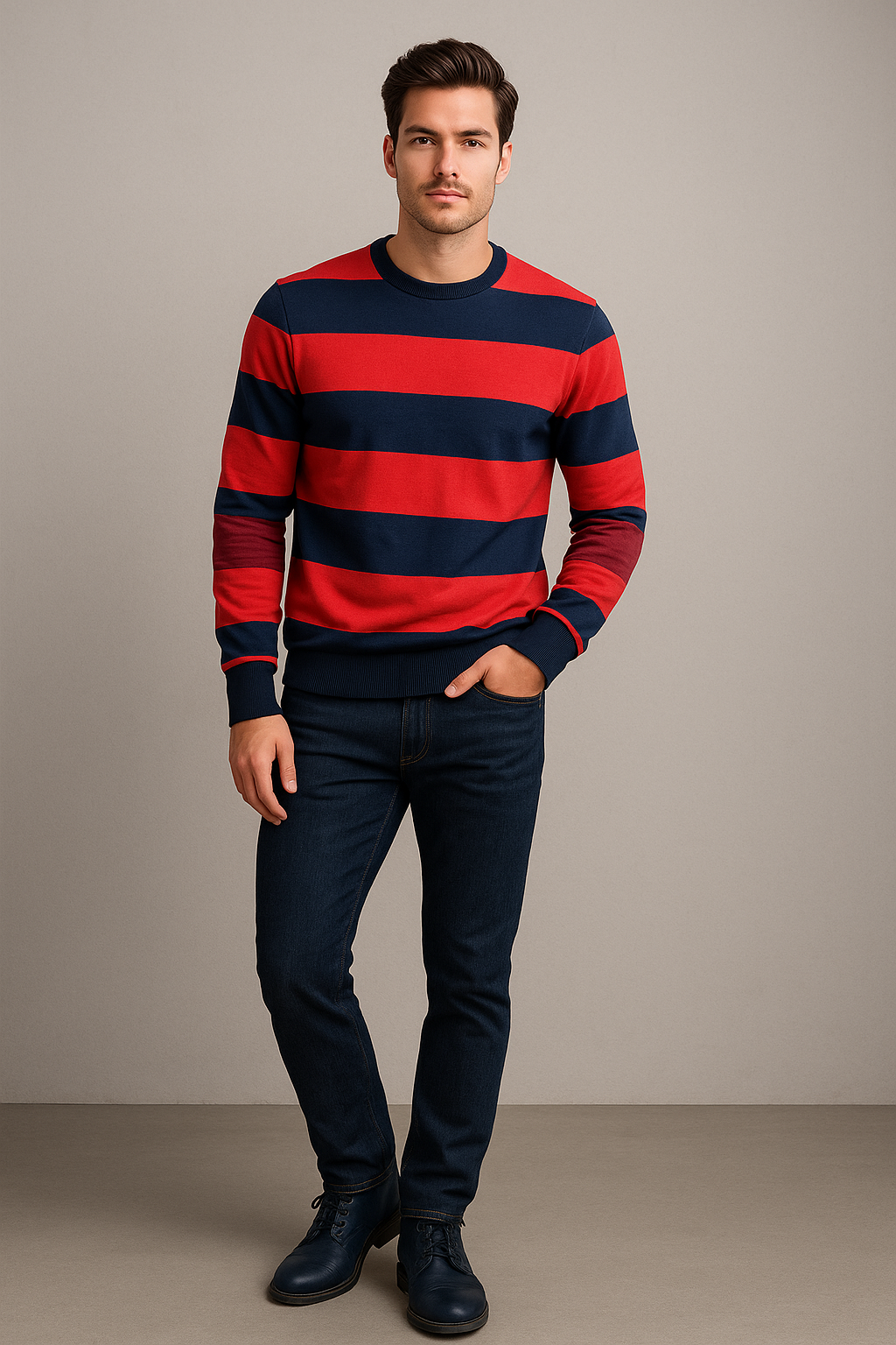 بلوز مردانه طرح راه راه جنس تریکو پاییزه